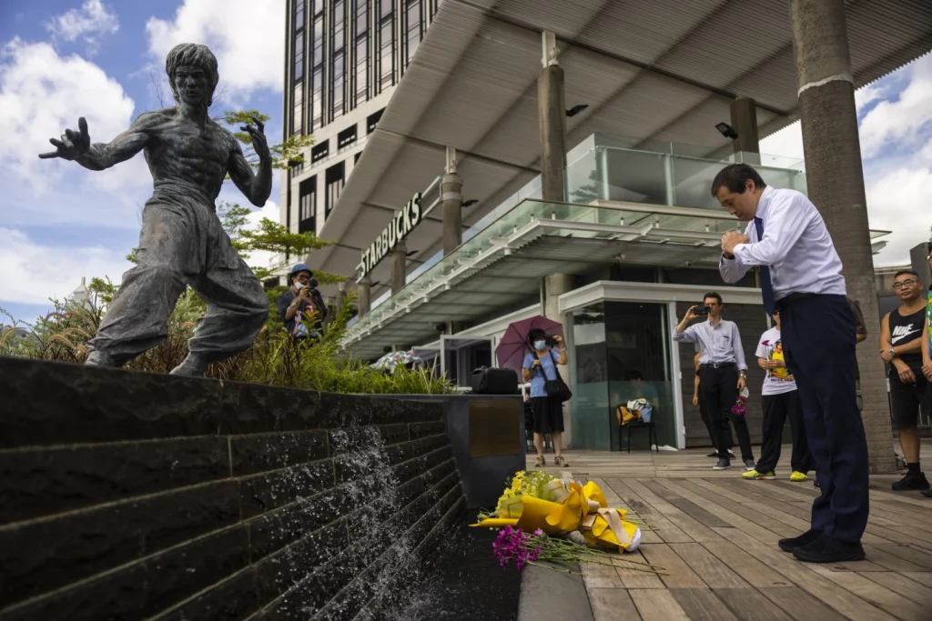 They also laid flowers at his statue at the Avenue of Stars, a tourist attraction modeled on the Hollywood Walk of Fame on the Kowloon shore of Victoria Harbor.