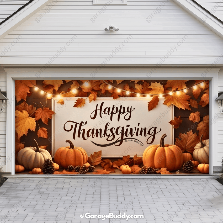 Picture the smiles when neighbors stroll by and see your garage wrapped in autumn colors, golden leaves, and gratitude-filled décor. With your Thanksgiving festive garage door cover, your home will become the warmest, most welcoming spot on the block this holiday season.